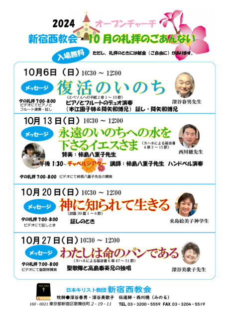 2024年10月のご案内です。 オープンチャーチをおこないます。